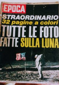 Conservo da 50 anni questo numero di Epoca del 10 agosto 1969. Ero un bambino allora, che seguì in diretta TV l’evento assieme a suo padre. Eravamo una generazione a cui insegnavano a scuola il progresso, la potenza delle grandi conquiste scientifiche e spaziali, l’idea che il futuro potesse essere davvero una grande avventura a lieto fine. Poi scoprimmo che le cose andarono diversamente, e che di lì a poco ci sarebbero stati l’autunno caldo, la crisi energetica, la strategia della tensione, il terrorismo. Ma sul finire di quegli anni sessanta io coltivavo ancora il mito di un mondo che sarebbe stato sempre migliore grazie alla scienza, alla tecnologia, all’intraprendenza dell’uomo, a una ottimistica visione del futuro.