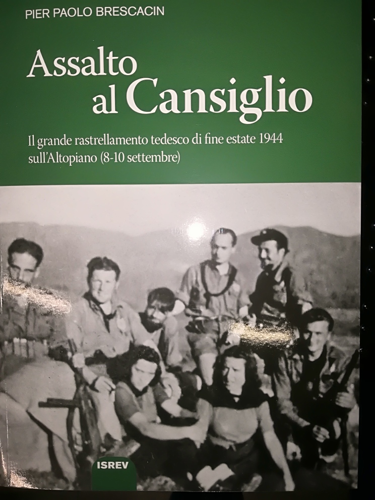 Nell’altipiano del Cansiglio, a partire dall’ 8 settembre 1943, nacque un vasto movimento di opposizione armata a nazisti e fascisti; fra queste montagne sono avvenuti importanti episodi della Lotta di Liberazione. Vittorio Veneto è stata insignita della medaglia d’oro al valor militare anche per la lotta partigiana in Cansiglio. Nella copertina Assalto al Cansiglio vi è un gruppo di partigiani della Nino Nannetti. Riconosco Amerigo Clocchiatti, Ugo, comissario politico, medaglia d’argento al valor militare ed Ermelinda Rocco, Katia, medaglia di bronzo al valor militare. Amerigo Clocchiatti nel suo libro Cammina frut racconta con chiarezza il valore del Cansiglio:
