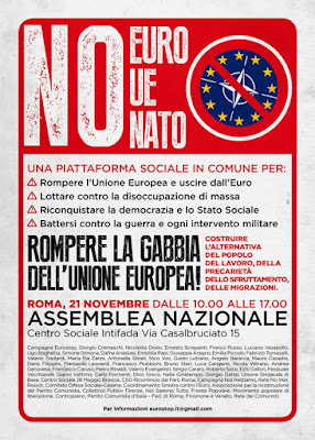 ROMA, 21 NOVEMBRE: ASSEMBLEA NAZIONALE DELLA SINISTRA NO EURO