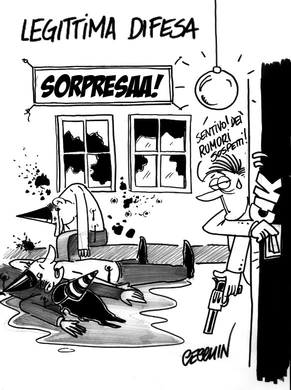 Ricordo che dissi, all’indomani dell’approvazione della legge, che questo avrebbe consentito di risolvere, fra l’altro, anche questioni di diatribe familiari. Per esempio. Sarebbe bastato che un coniuge affermasse di aver sentito dei rumori in cucina e preso dal panico avendo la percezione di essere in pericolo ha sparato nel buio colpendo l’ignaro coniuge (che era andato in cucina a prendere un bicchier d’acqua).