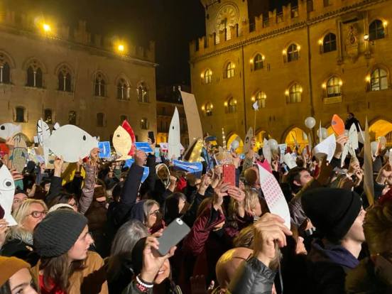 L’innesco è stato un format che ha funzionato. Qui in Emilia eravamo in diversi alla ricerca di un deus ex machina da contrapporre alla narrazione securitaria della destra. Essendo palese l’inadeguatezza del ricorso a meri indicatori di rendimento economico e istituzionale da contrapporre alla virulenza del messaggio identitario del fascio-leghismo. Io stesso avevo pensato a un manifesto identitario dell’Emilia rossa da agire come un ‘verbo’ e poi, con Alessandro Gamberini, a una catena di sant’Antonio di filmati autogestiti (‘Io siamo noi’) da irrorare sui social. Poi sono arrivati questi quattro dell’ave Maria con le sardine è il format ha funzionato a meraviglia. Leggermente, in punta di ironia, hanno trovato il simbolo necessario che ha fatto da detonatore: la sarda. Il pesce più piccolo, più povero e più numeroso. Il ‘pesce massa’ che ripopola le città. Un caso, una trovata estemporanea che diventa un’icona in grado di trattenere una narrazione universale. Una magia.