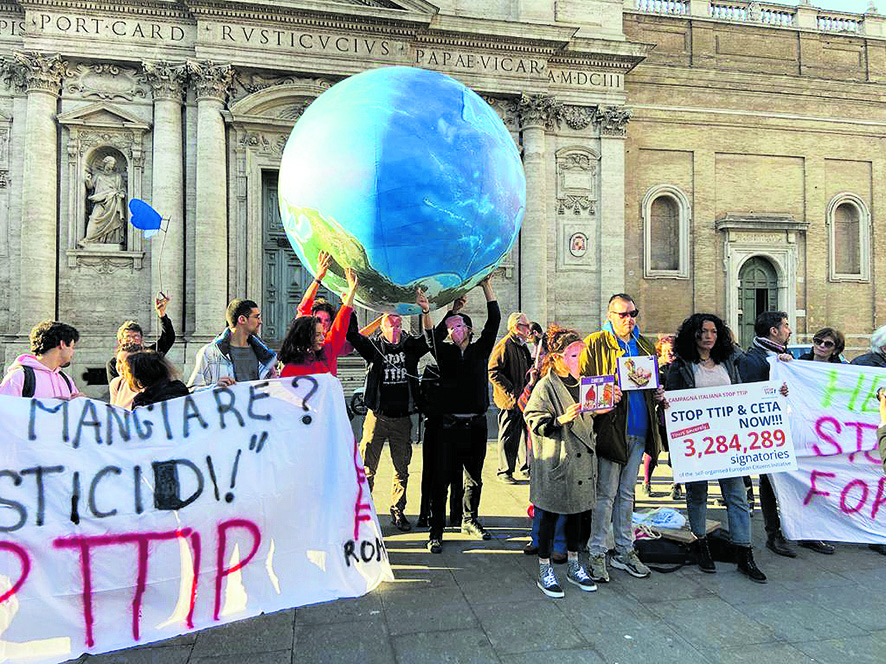 Non a caso la posta in gioco tra USA e UE sono anche i dazi, che il presidente Donald Trump intende imporre sui prodotti alimentari italiani. Le associazioni, tuttavia, sottolineano che «Noi crediamo che non sia opportuno stringere accordi con uno Stato il cui presidente disconosce l’emergenza climatica e con il ricatto dei dazi vuole imporre all’Europa e all’Italia l’importazione di prodotti pericolosi per il Pianeta e la salute dei cittadini – ha spiegato nel corso del presidio Akira Genovese, di Fridays For Future Roma – Per questo condividiamo la proposta della campagna denominata: Stop Ttip/Ceta e apertura di un tavolo di confronto per avere chiarimenti sull’azione di governo».