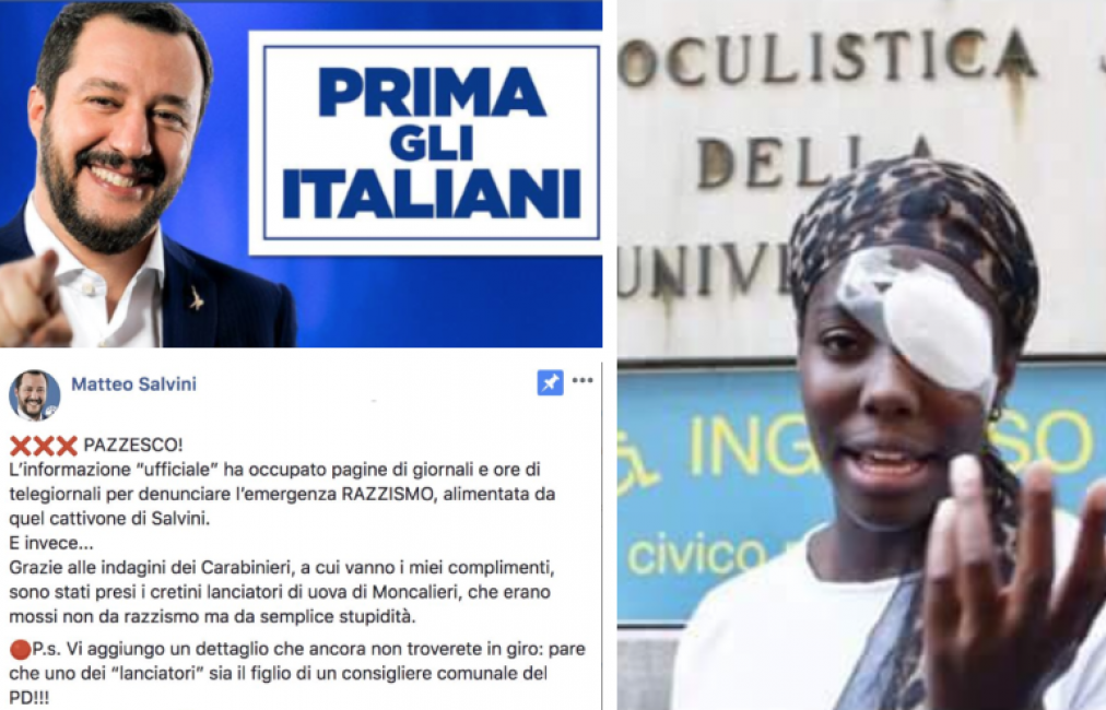 “Se verrà dimostrato che il razzismo non c’entra niente e che addirittura, come pare, il primo di questi cretini è il figlio di un consigliere comunale del Pd, c’è qualcuno che deve chiedere scusa e fare silenzio per il prossimo mese”. Così Salvini. Siccome l’uovo contro Daisy l’avrebbero lanciato tre ragazzi in vena di goliardie (e si sa che i goliardi, i bulli, i violenti, quelli che puntano il debole e l’indifeso non sono in nessun caso razzisti!), allora chi avrebbe anche solo immaginato o detto che si trattasse di razzismo adesso dovrebbe chiedere scusa.