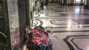 Quindi via i senzatetto con la loro ingombrante presenza per coperte, sacchetti, cenci e visi emaciati e tristi.