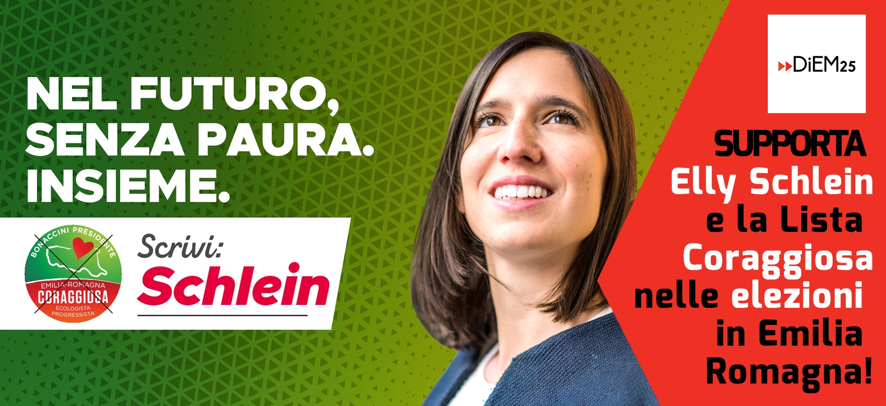 DiEM25 (“Democracy in Europe Movement”, Movimento per la Democrazia in Europa), il movimento transnazionale fondato da Yanis Varoufakis – insieme a personalità globali come Noam Chomsky e Briano Eno, e consigliato tra gli altri da Naomi Klein, John Galbraith e Ken Loach – dopo una consultazione paneuropea dei suoi membri (provenienti da ben 33 paesi diversi), ha deciso quasi all’unanimità (97% dei consensi) di continuare ad andare avanti in Italia nella costruzione di una forza progressista che possa contrastare con determinazione le forze nazional-populiste che stanno pericolosamente guadagnando terreno sotto la guida xenofoba di Matteo Salvini, sostenendo nelle imminenti elezioni in Emilia Romagna la lista di Elly Schlein denominata “Emilia Romagna CORAGGIOSA” (www.coraggiosa.it), parte della coalizione democratica e antifascista.