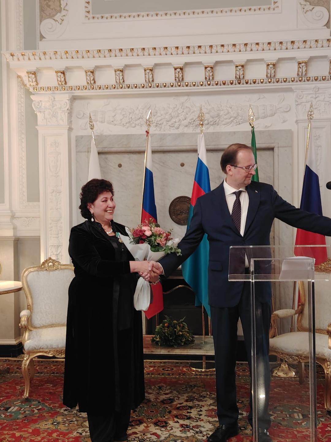 Durante la cerimonia, l’Ambasciatrice Brito Sandoval ha ricevuto l’onorificenza “Per la Cooperazione” dal Ministero degli Affari Esteri della Federazione Russa, una medaglia destinata a personalità che hanno significativamente contribuito al dialogo culturale tra la Russia e altre nazioni. «Questa distinzione rappresenta un valore universale», ha affermato l’Ambasciatrice nel suo discorso. «L’arte, la musica, la cultura e la bellezza della produzione dei popoli devono essere condivise nella grande famiglia universale».