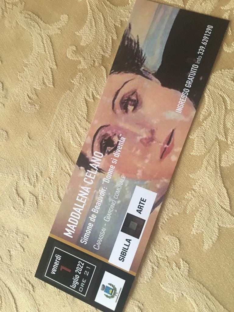 Questo 1 luglio 2022, ho avuto il piacere di conoscere la realtà dell’ Ass. Sibilla Arte, Associazione attiva nel Comune di Carassai, in provincia di Ascoli Piceno, che ha dato inizio agli eventi dell’estate carassanese, quest’anno all’insegna del decennio magico ’60-’70, con la presentazione “ Donne si diventa” di Simone de Beauvoir, un testo e un personaggio fondanti in quella che è stata definita recentemente “l’unica rivoluzione ancora in corso”.