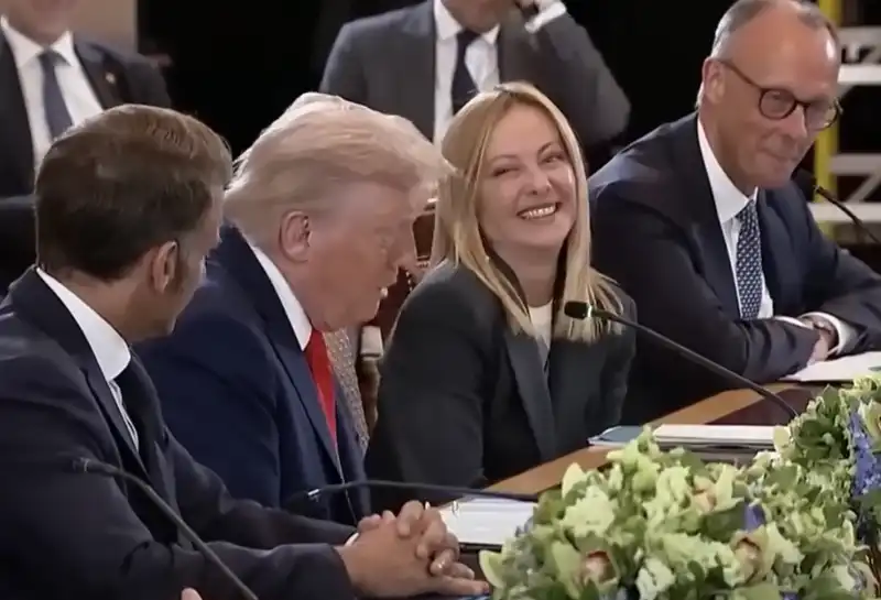 Il diavolo si nasconde nei dettagli dell’incontro più surreale e “malato” della storia politica internazionale. La regia trumpiana ha collocato Giorgia Meloni, in versione “pon-pon a stelle e strisce”, a sinistra del presidente americano. A destra, invece, si è seduto Macron, il nemico più detestato.