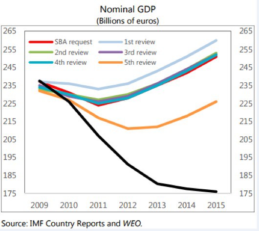 In particolare lo stesso FMI mette in luce come la problematica degli effetti di una stretta fiscale sui saldi della bilancia delle partite correnti è stata completamente sotto stimata, la Grecia ha continuato a perdere la residua competitività ed ora è materialmente nell’impossibilità di ripagare alcunchè.