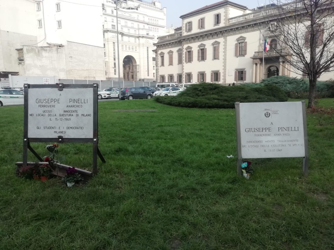Fatto sta che entrambe le lapidi in memoria di Pinelli a tutt’oggi presenti in Piazza Fontana recano la data del 15 dicembre e i «locali della Questura» come luogo della morte. Sulla prima, posta dai “compagni” di Pinelli, studenti, anarchici e sindacalisti nel 1977, si parlava in realtà del 16 dicembre prima che gli atti di vandalismo costringessero a posizionarne una nuova, questa volta con la data (s)corretta. La stessa riportata anche sulla seconda, affissa nel 2006 su decisione dell’allora sindaco di Milano Gabriele Albertini. Una prima, tardiva ammissione di colpevolezza? «Più un lapsus freudiano», scherza Deaglio, il primo ad accorgersi dell’incongruenza: «nemmeno la figlia Claudia ci aveva fatto caso. Una volta segnalato l’errore, però, nessuno ha reagito».