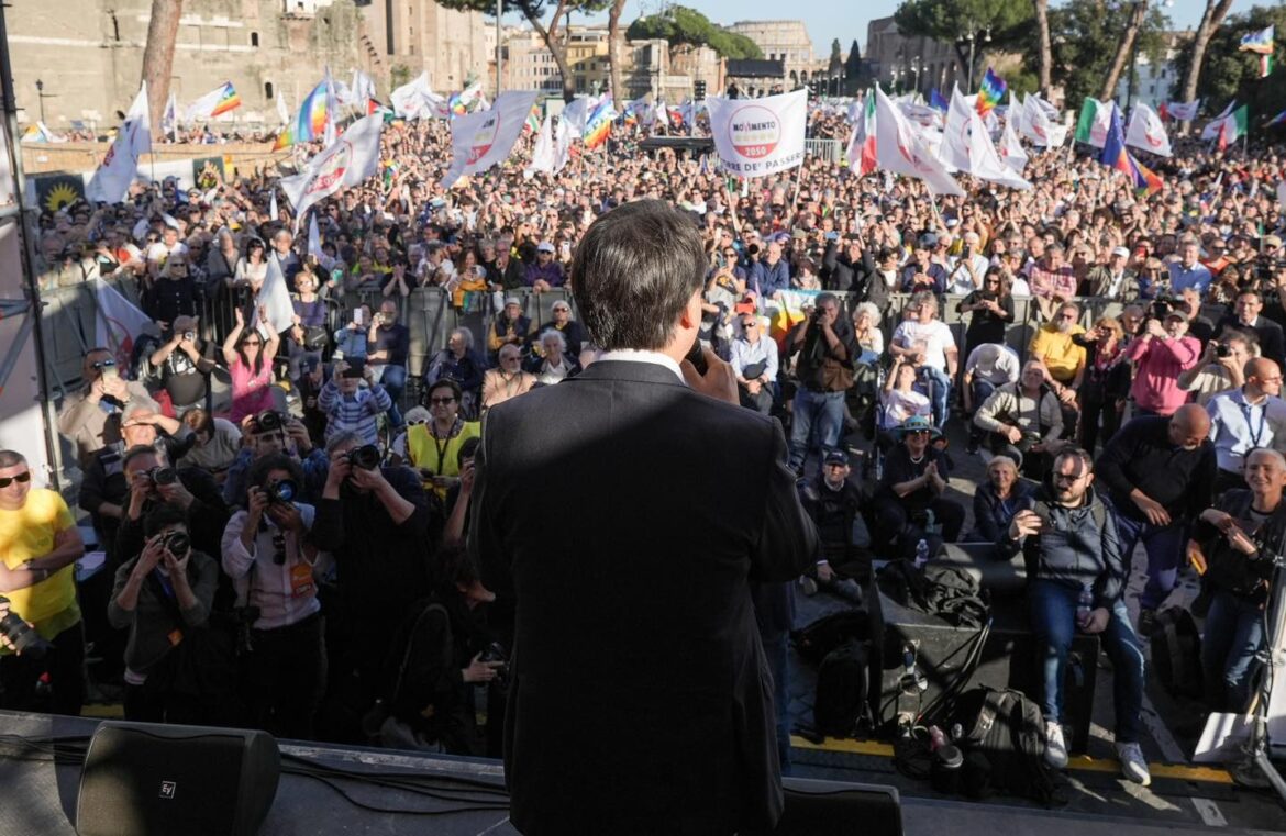 giuseppe conte manifestazione contro il riarmo foto lapresse