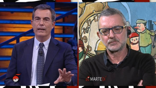 L’argomento era, ovviamente, la guerra. E il testosterone bellico si sprecava. Sembrava di essere tornati agli anni trenta, alla retorica dell’Italietta fascistissima e pseudoimperiale. Qualche voce discordante (compresa la mia, sia pur flebile) in funzione di legittimazione, e poi un ricco parterre di giornalisti con l’elmetto, politicanti d’assalto, pasionarie dal verbo tanto fiammeggiante quanto inconcludente, vecchie glorie del militarismo atlantista. Persino un capo dei servizi, sì, quelli segreti, che all’improvviso compare in uno spezzone d’intervista (registrata), inopinatamente, proprio a ridosso degli interventi critici mio e di un collega, per lanciare una curiosa, chiamiamola così, analisi “politica” su un presunto legame tra “no vax” e “putiniani”: vedete voi il livello. Una coincidenza: non si riferiva direttamente a noi. Ma l’occasione è ghiotta per chiedersi, e chiedere a quel signore, perché posizioni politiche fino a prova contraria legittime, e certamente argomentate e razionali, alternative anche se ovviamente non rispondenti alla sua rozza caricatura, debbano essere da “non sottovalutare” (cosi sì è espresso). Spero sia ancora lecito porre una tale domanda a un dipendente dello Stato.