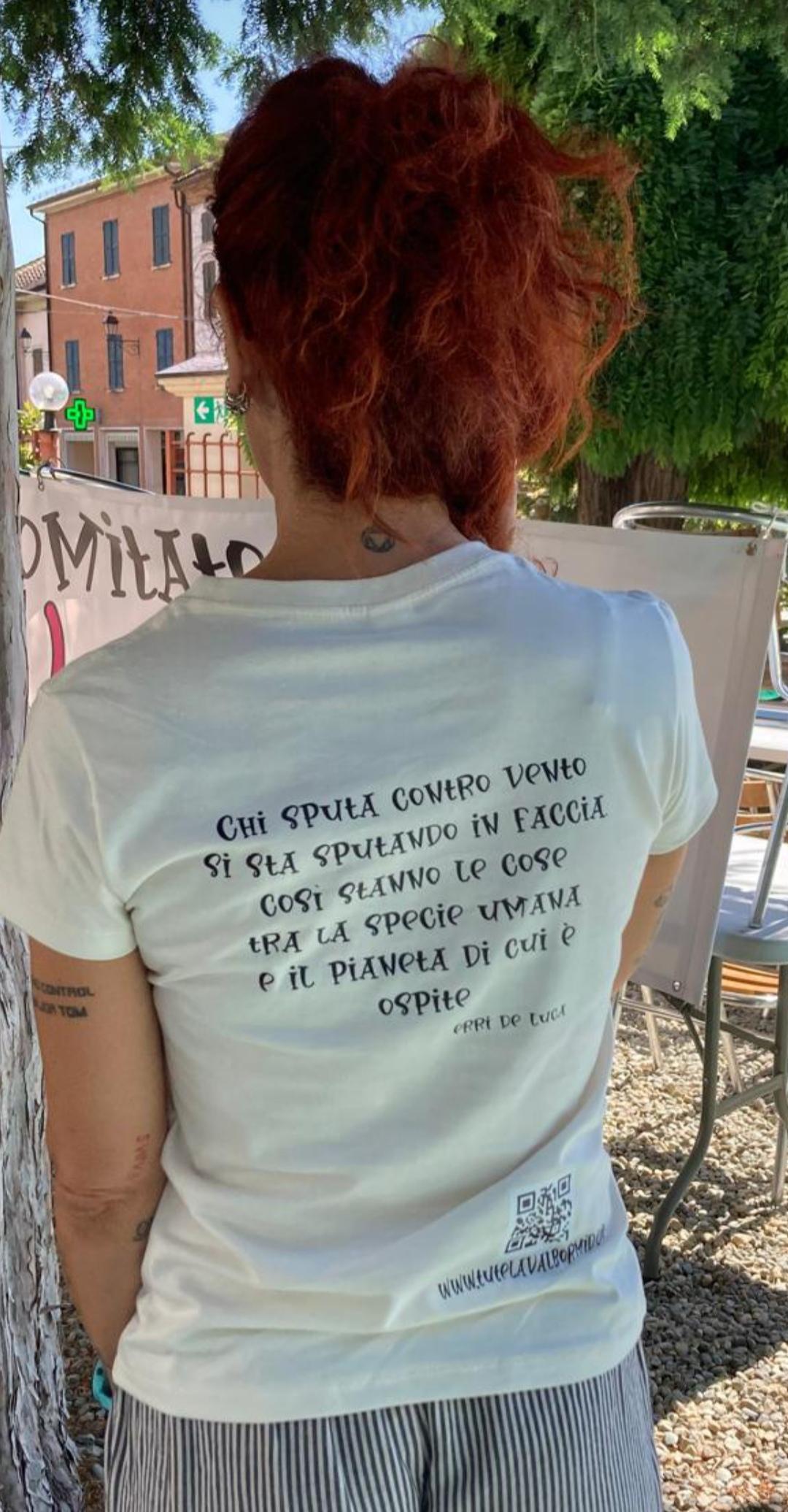 Le magliette indossate richiamano al simbolo di un Pianeta da abbracciare. Una frase, di Erri De Luca fornisce uno spunto di riflessione importante: ” Chi sputa controvento si sta sputando addosso. Così stanno le cose tra la specie umana e il Pianeta di cui è ospite.” Altre scritte, altre magliette. Per saperlo seguiteci, raggiungeteci. Buzzz Blog parla di noi, di voi, della Casa che abitiamo, la nostra Terra . Li ringraziamo tantissimo… così come i giornalisti e le testate che ci stanno dando spazio. Non è la nostra voce, è la voce di un Territorio e deve diventare la voce di tutti.
