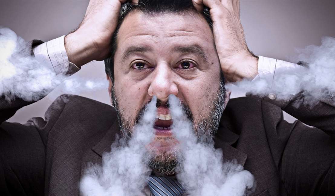 Dopo avere replicato il consueto format di sdolcinate ovvietà e di truculenze che tanto piacciono ai craniolesi che lo circondano si è messo persino a piangere pensando ai suoi figlioletti…. uno spettacolo patetico e ridicolo per un leader che ha avviato una crisi di sovranità, uno stato d’eccezione…. In effetti costui son tre anni che fa comizi ininterrottamente, più come un maraglio di una orchestrina alla filuzzi che una rock star. Potrebbe anche incorrere in una grave crisi psichica, come tipico in chi vive in un perenne corpo a corpo con i fans e si trova svuotato di tutto. Comunque sia la crisi sarà lunga e surreale. E con sviluppi imprevedibili. Quel che è certo è che al primo atto il ‘capitano’ ha pestato una merda.