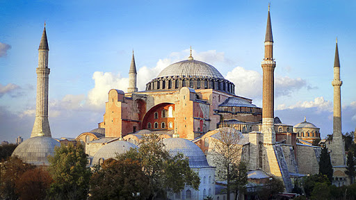 Sofia, vale a dire Sòphia, la Sapienza divina, la “Seconda Persona” della Trinità, il Figlio. È la cattedrale dedicata alla “Santa Sapienza” divina, vale a dire per la tradizione ortodossa al Cristo in quanto Logos, Sapienza e Verità eterna, la Seconda Persona della Trinità. Ma i cittadini grecofoni della Nèa Ryme, la “Nuova Roma”, la chiamavano semplicemente Megàle Ekklesìa, “la grande chiesa”; ed era considerata la Mater Ecclesiarum e il luogo più santo della Cristianità. Sognata e avviata da Costantino, era stata inaugurata nel 360 dall’imperatore Costanzo II. Ricca di strutture lignee, fu incendiata nel 404. Ricostruita e quindi incendiata di nuovo durante la cosiddetta “rivolta della Nika” del 532, spettò a Giustiniano il ricostruirla. Il grande imperatore non badò a spese e fece arrivare da tutti gli angoli dell’impero i marmi più pregiati; il progetto dell’immensa cupola fu probabilmente costruito sulla base dei calcoli di Erone d’Alessandria. L’imperatore e il patriarca Eutichio inaugurarono la nuova basilica il 27 dicembre 537, festa dell’evangelista Giovanni. Da allora il tempio divenne il luogo più sacro della Cristianità, illustrato anche dalle reliquie della passione del Cristo che l’imperatrice Elena madre di Costantino aveva inviato a Costantinopoli verso il 330.