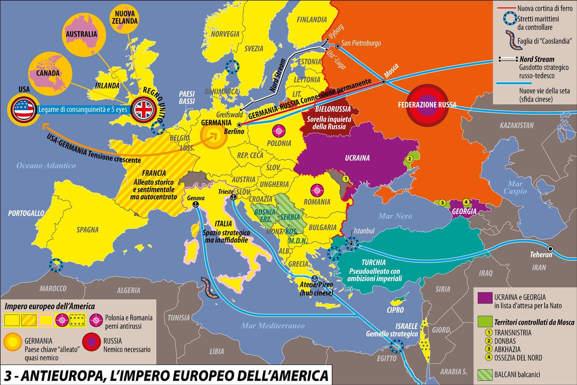 La definizione a stelle e strisce di “stabilità in Europa” implica l’assenza di potenze o coalizioni di potenze in grado di mettere in discussione l’egemonia degli Usa sul continente più ambito (c.d. impero europeo dell’America).