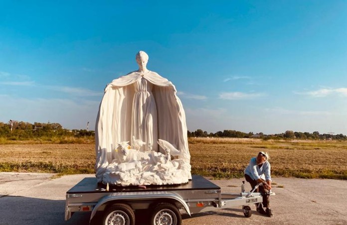 L’immagine qui riprodotta è La “Madonna della sana convivenza” di Federico Soffiato. L’artista l’ha definita con queste parole: “Questa scultura bianca è un fantasma che appare e la sua apparizione fa sì che il rimosso possa ritornare presente e noi consapevoli”.