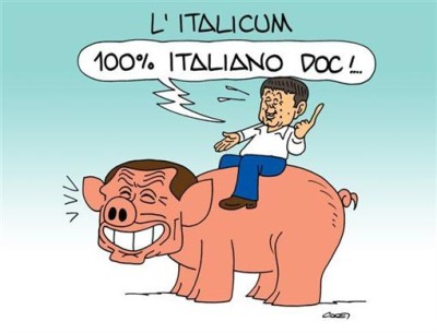 L’Italicum? È la legge più bella del mondo. Ce la copieranno. Ma va modificata, non nei punti essenziali. Il ballottaggio no, resta. Anzi il ballottaggio si cancella, perché favorisce M5S. Facciamo una proposta in Parlamento. No, non ci sarà nessuna proposta. Siamo pronti a cambiare l’Italicum anche radicalmente. Prima delle elezioni. No dopo. Intanto facciamo una mozione. Ma non va snaturato, lo cambiamo ma resti com’è. Giusto qualcosina per garantire PD e destra contro Grillo. Tanticchia. Sennò facciano le loro proposte e si presentino coi ‘numeri’ in Parlamento. Se ci sono i numeri si può discutere. Sennò discutiamo da soli, come dall’analista. E poi c’è tempo. Non c’è tempo. Se ne discuterà prima del referendum. Anzi, dopo il referendum. E perché no durante il referendum, per stemperare la tensione? E comunque il PD farà una proposta di cambiamento, per stanare la minoranza. No, no, nessuna proposta del PD. Trattiamo con la minoranza. Non trattiamo. E poi il premio alla lista non si tocca. Però punteremo sulle coalizioni. I collegi? 100. 300. 600. Tutto il cucuzzaro. Piccoli, grandi, intermedi. Tutti nominati, nessun nominato, tot nominati (fate i numeri). I capilista sono la soluzione, a me i capilista fanno schifo. Però decide il Parlamento. Il governo non si impiccia. È la minoranza che deve parlare. Ma magari aboliamo il ballottaggio, facciamo alla greca. Orfinellum. No, alla tedesca. Tedeschellum. No, alla spagnola. Ce la chiede l’Europa? Europeum? Ma non era l’Italicum? E non si era deciso che era la legge fine de mondo?