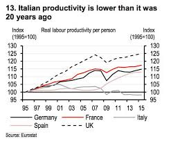 Un altro problema che nasce molto tempo fa è il declino della produttività italiana che dipende da molti fattori: la diminuzione della quota degli investimenti sul reddito, la piccola dimensione delle piccole imprese italiane, quindi con scarsa capacità di innovazione, nonché un terziario arretrato.