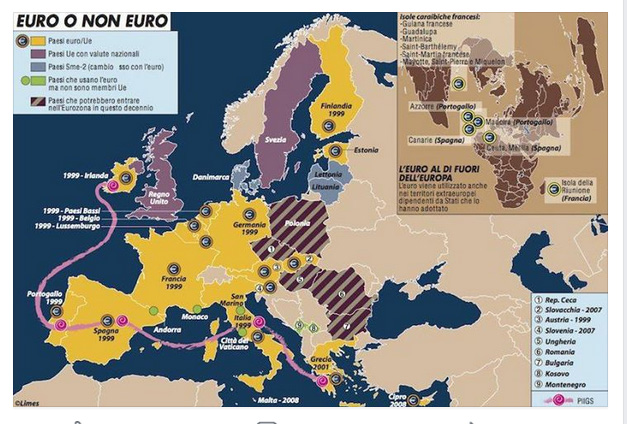 Che verrebbe ristretta in un core di cinque paesi (Germania, Francia – per quanto con dubbi – Austria, Benelux, di cui si è già visto sopra la stretta interdipendenza economica con la Germania; v. anche Germania cit.); mentre altri paesi resterebbero in un’area comunque in qualche modo dipendente dall’area centrale.