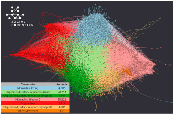 “La maggior parte… sono inautentici e hanno la funzione di inondare Twitter di immagini e contenuti monarchici e filo-Pahlavi per far sembrare che su Twitter ci sia una base di sostenitori monarchici più ampia di quella che riflette la realtà”.