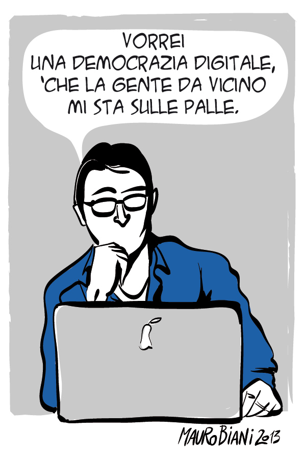 Mi spiace, ma non saranno le scorciatoie digitali, né le ‘cliccate’ a salvare la democrazia e dunque la sinistra. Non sarà gettandoci a peso morto nella ‘tecnica’ che si renderà la nostra azione politica più efficace. Anche perché la tecnica non ama granché la politica: troppe opinioni, troppa chiacchiera, troppa umanità e dunque troppa democrazia! Non si fa innovazione puntando sulla liquidità del web, al più si ripercorrono strade ormai vecchie. L’innovazione è all’opposto: tornare fra i lavoratori, i disoccupati, i cittadini, le figure sociali, le forze attive, i disagiati, gli ultimi. Ma tornarci con i propri ‘corpi’ e le proprie gambe, non con le fibre ottiche.
