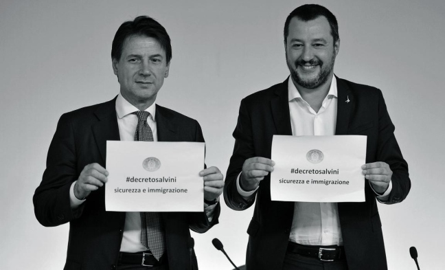 Capita rare volte di ammirare immagini il cui valore simbolico non potrebbe venire espresso neppure da mille approfonditi discorsi. Nel nostro Rinascimento le chiamavano imagines agentes proprio per la loro potenza nel rappresentare un modo di essere, una visione del mondo, una cultura, nel senso antropologico del termine. Una di queste è senz’altro quella in cui il nostro Primo Ministro, in piedi e quasi all’ombra di un suo ministro, esibisce con lui un cartiglio a eterna memoria di un epocale decreto fermamente voluto da quest’ultimo in difesa della nostra sicurezza, della Patria e dei suoi sacri confini.