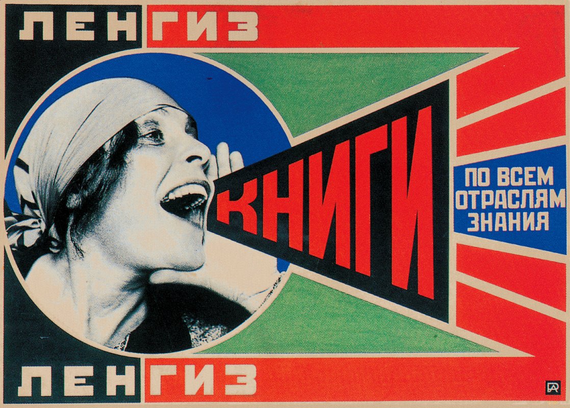 Era il 1924 e quando la casa editrice moscovita Gosizdat commissionò ad Aleksander Rodchenko un manifesto, questi sviluppò un’idea molto semplice: una donna che grida “libri”. Quel fotomontaggio, la cui protagonista era l’artista Lilja Brik, è elementare, quasi banale come strumento pubblicitario, eppure è diventato una della immagini simbolo del Novecento, per la sua forza espressiva e per il suo potere evocativo.