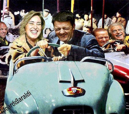 Naturalmente anche Renzi, come Berlusconi vive nel Paese che ama ed è questo forse uno dei guai più grossi dell’Italia: gli amanti bugiardi che pretendono di redimere e salvare, mentre sono soltanto degli Schettino incapaci e al servizio della “compagnia”. Ma la cosa più sconcertante non sono tanto i papocchi retorici privi di qualsiasi senso, una sorta di gramelot politico che imita soltanto la presenza di idee, non è nemmeno la coincidenza straordinaria con il canovaccio ventennale del Cavaliere, ma il fatto che il Paese non si sia ancora stancato di credere alle favole, di sentirsi rinviare anno dopo anno l’immancabile uscita dal tunnel, non sospetti che le medicine proposte siano proprio quelle che hanno causato la malattia. E’ possibile che una senatrice del Pd, senza alcun contraddittorio, dica dell’articolo 18 che andrebbe abolito come segnale psicologico per gli investimenti dall’estero? Qualcuno le ha mai detto che già il 50% delle aziende italiane è in mani straniere e che semmai le difficoltà nell’attrarre investimenti derivano dalla corruzione dilagante e dall’insostenibile fatuità e avidità del ceto politico? Ma le stupidaggini più rozze piacciono molto soprattutto se creano false e facili speranze.