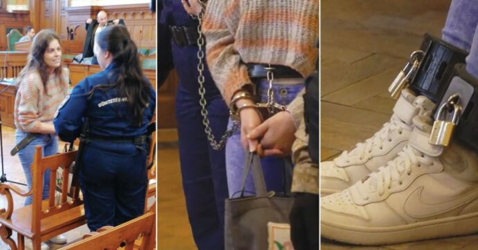 1) La donna arriva legata mani e piedi come fosse Hannibal Lecter, ma i media ci dicono che è accusata solo di lesioni lievi (5 giorni sine cura) a due giovanottoni che neanche hanno denunciato. È una strana incongruenza che ci fa automaticamente pensare che gli ungheresi siano barbari e pazzi.