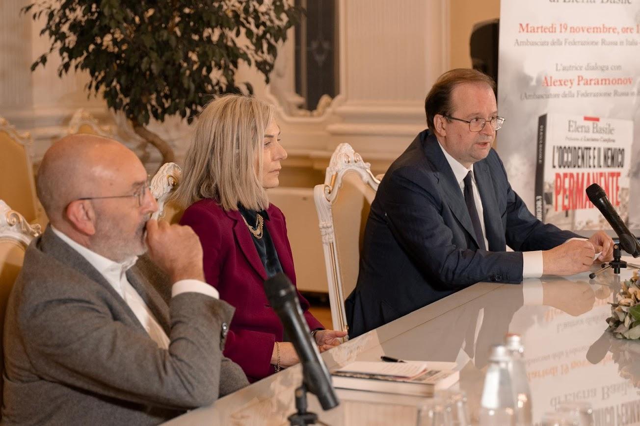 Questo 19 novembre 2024, presso l’Ambasciata Russa a Roma, nelle eleganti sale della sua Sede – il Villino Rudinì sito in Via Gaeta n. 5, nel Rione Castro Pretorio – si è tenuta la presentazione del libro “L’Occidente e il nemico permanente”, opera della politologa, scrittrice e giornalista pubblicista Elena Basile, già Ambasciatrice d’Italia.