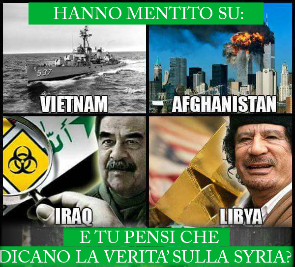 Come ci hanno mentito su Vietnam, Iraq, Afghanistan e Libia ora lo stanno facendo su un altro stato sovrano che sta resistendo ad assurde politiche imperialiste: la Siria.