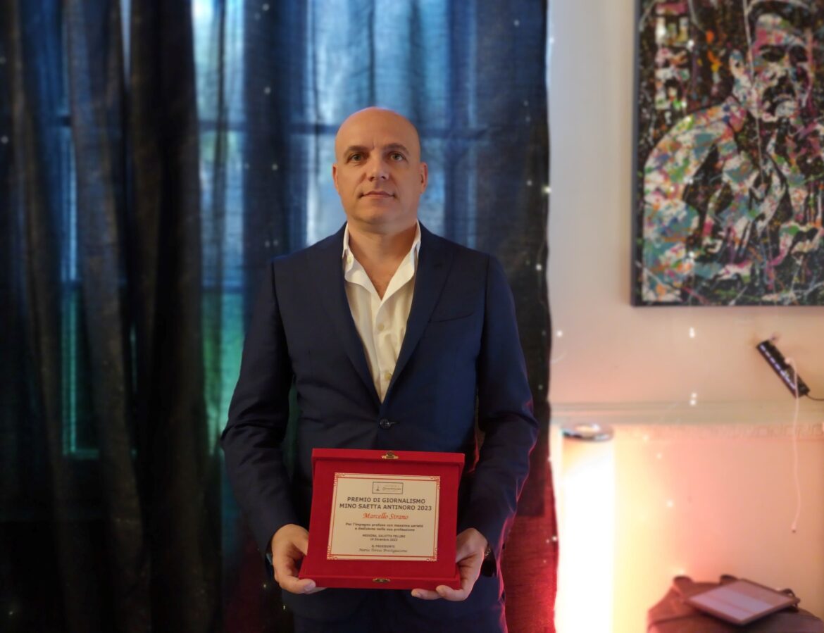Il 16 dicembre nella splendida cornice del Salotto di Fellini nella città di Messina, il giornalista Marcello Strano è stato premiato con il Premio di Giornalismo Mino Saetta Antinoro 2023, durante la cerimonia di premiazione del Concorso natalizio dell’Accademia Euromediterranea delle Arti. Molti artisti, poeti, fotografi e giornalisti hanno partecipato al concorso con i loro lavori di pittura, fotografia, poesia in lingua italiana, poesia dialettale, racconti brevi e articoli giornalistici. Il tema del premio si riferisce alle feste natalizie di ieri e/o di oggi nonché ai ricordi legati ad un inverno particolare da ricordare. I premi sono stati assegnati da una commissione presieduta dalla prof.ssa Maria Teresa Prestigiacomo, presidente dell’Accademia.