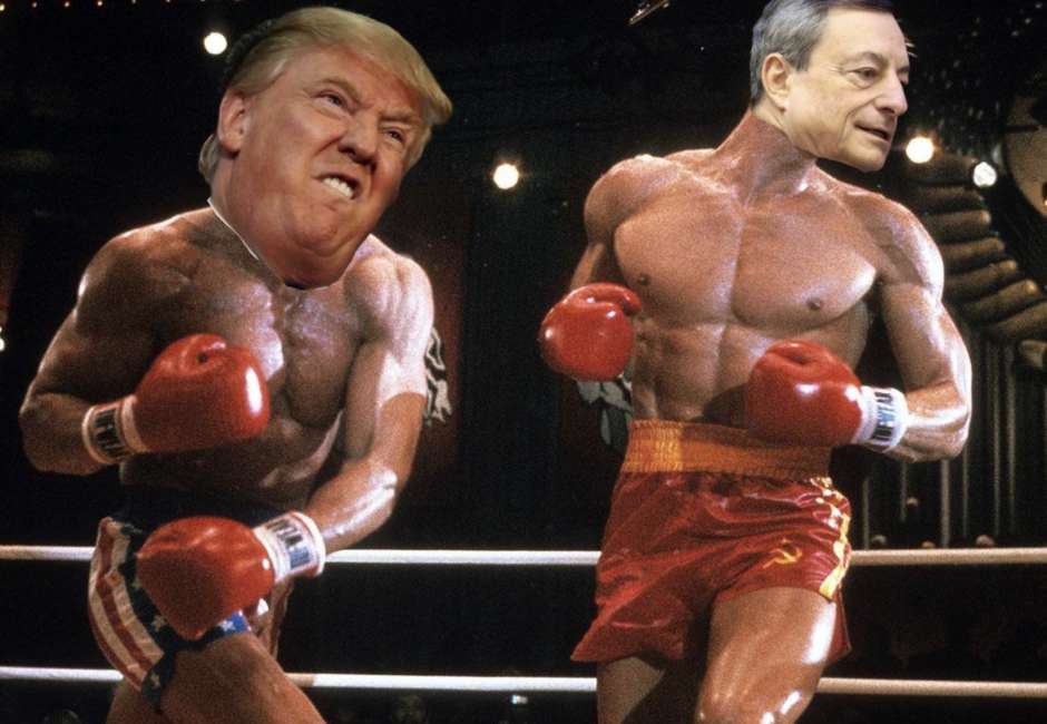La ricetta? Riduzione dei tassi d’interesse e l’apertura di un nuovo quantitative easing. Denaro fresco in circolo nelle vene del sistema economico europeo. Una mossa che fa volare le Borse di mezzo mondo contribuendo a un deprezzamento del dollaro sull’euro, ciò che agevola le esportazioni del Vecchio Continente ma manda su tutte le furie il Presidente degli Stati Uniti.