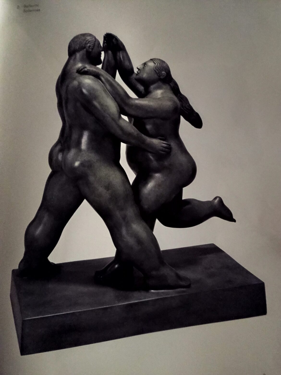 “Identificare la bellezza con la magrezza è occidentale e moderno, pregiudizio anglosassone e protestante. Tra i popoli antichi, nelle culture primitive la magrezza produce ripugnanza o spavento perché associata alla fame e la malattia. Nella consuetudine grecolatina l’armonia tra le membra non escludeva l’essere robusto. Quando Botero era bambino, la tradizione latino-americana associava l’abbondanza alla bellezza. Da giovane, in maniera quasi incosciente, cominciò a fare bozze di corpi gonfiati che divennero poi il suo tema. Apparve un mondo sontuoso, insolito, sorridente, tenero, innocente, sensuale. A lui intanto parevano snelli, erano l’esaltazione della vita che comunica la voluttà delle forme. L’obesità divenne veicolo di sensualità artistica, un punto di vista e un metodo prima ancora di una concreta realtà. Le sue figure voluminose, quindi, sono amore alla forma, al volume, al calore, sono una festa visiva prima ancora che desiderio, strumento di trasfigurazione della vita. Continua Vargas Losa osservando che sensualità non è sinonimo di sessualità, e in certi casi nel mondo di Botero possono essere contrari. Le sue donne elefantiache con enormi gambe e colli di buoi sono carnose, non carnali. Hanno tutte un sesso quasi invisibile, smarrito e vergognoso tra le masse delle gambe. In esse non c’è lascivia, l’ingrediente sessuale è infimo. Sono grasse e placide, innocenti e materne. Anche se sono nude, bevendo, ballando molto stretto o coricate sul letto, danno l’impressione di essere eunuche e inibite. In questo mondo essenzialmente matriarcale i maschi cercano nelle femmine, più che piacere, la compagnia e la protezione. Davanti ad esse sembrano indifesi e piccolini. Le donne di Botero con i loro quaranta o cinquanta anni incarnano soprattutto la donna-madre, il tabù supremo, colei che allatta ed è colonna del focolare. È questa immagine che prevale e che rende timida e pudica l’attitudine con la quale gli esseri maschili si avvicinano.