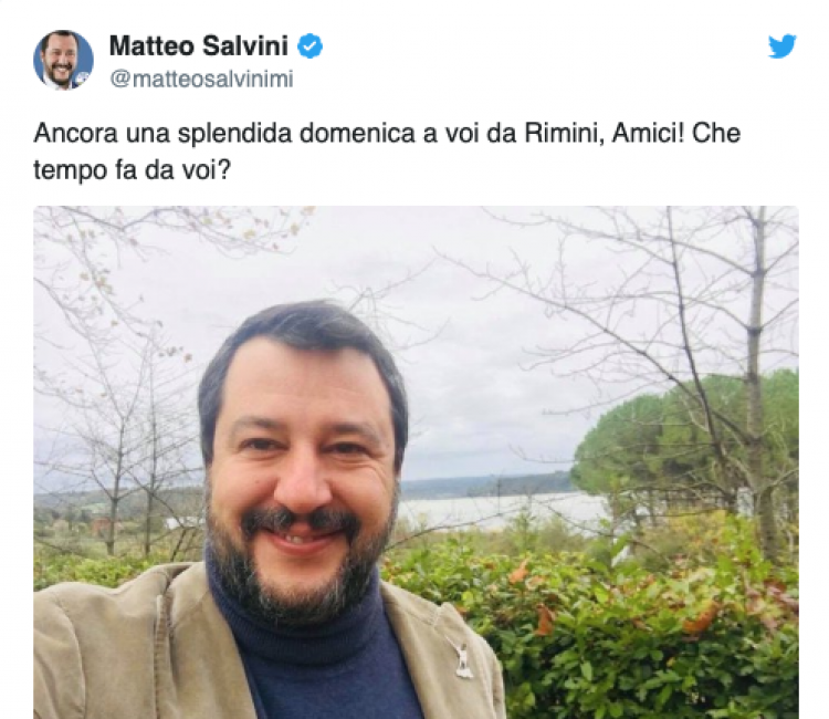 Salvini: Mentre mezza Italia è flagellata dal maltempo, twitta sorridente da Rimini: “è una splendida domenica, che tempo fa da voi?”