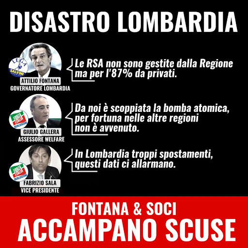 Non siamo disposti a vedere ripetersi nella Fase 2 gli stessi errori della Fase 1. Pensiamo che sia necessario chiedere le dimissioni immediate dei politici che attualmente governano la Regione Lombardia.