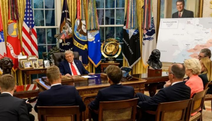 È bastata una sola foto per imprimere per i posteri l’umiliazione totale delle élite politiche dell’EUrotrash nell’Anno 2025: la Coalizione dei Coglioni, nell’Ufficio Ovale, in fila come un branco di allievi intimoriti, severamente redarguiti dalla Voce del Padrone – il Preside… ovvero il Capocirco.