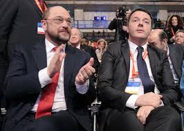 Renzi aveva appena finito di entrare nel PSE, nell’entusiasmo generale dei compagni della sinistra pd, che vi vedevano la conferma del proprio ruolo: “vedete, miscredenti (voi tsipristi), siamo entrati nel pse, altro che partito di centro” (non sommessamente Occhetto ricordava che veramente il pse, quando eravamo pds, l’avevamo fondato noi; Occhetto chi?); oppure: “noi votiamo Schulz e votiamo pse, per rafforzare Schulz bisogna votare Schulz, ogni voto dato a Tsipras é perso per il pse” (quanto ci avete rotto, cari compagni!).