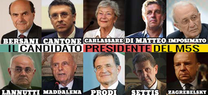 Siamo nel pieno del toto Quirinale! Chi sarà il nuovo Presidente? Domani 29 Gennaio 2015, alle 15.00 la prima votazione dei 1009 grandi elettori. Tutti sparano a zero, e il M5S, un po’ a sorpresa, ha dato una rosa di 10 nomi, una lista uscita fresca fresca, dall’assemblea dei Deputati e dei Senatori, da votare sul blog. I prescelti sono: Romano Prodi, Pier Luigi Bersani, Raffaele Cantone, Lorenza Carlassare, Nino Di Matteo, Ferdinando Imposimato, Salvatore Settis, Gustavo Zagrebelsky, Elio Lannutti, Paolo Maddalena. Lorenza Carlassare ha però immediatamente rinunciato. La votazione on line sarà pertanto effettuata sui nove nominativi restanti e alle 14 si saprà chi è il candidato Presidente a 5 Stelle.
