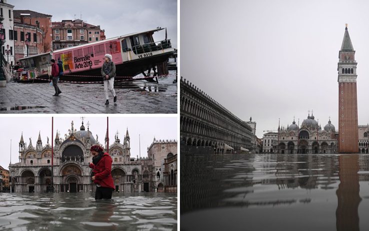 Il commento più pertinente su quello che sta accadendo a Venezia l’ha fatto Ellkappa (al secolo Laura Pellegrini) con la sua vignetta del 14 novembre su Repubblica. In testa c’è la scritta “E DIO CONSEGNO’ AL MOSE SEI MILIARDI”, poi l’immagine vede Dio che consegna le tavole della legge su cui c’è scritto “6 MILIARDI” a delle mani febbrilmente protese, e sotto il commento “E VENEZIA SPROFONDO’ SOTTO UN’ALLUVIONE DI MAZZETTE”.