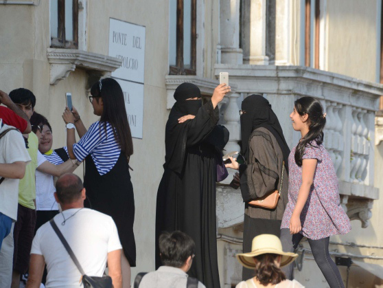 Ma mai così tanti sono invece quelli che ci arrivano, per uno o due giorni, a volte poche ore, in fila come condannati, allineati come forzati delle crociere o dei viaggi in comitiva, vomitati giù da pullman e navi multipiano, spaesati, ma concentrati a agitare il bastoncino dei selfie, per immortalare loro stessi e dietro sullo sfondo uno scenario milioni di volte fotografato, dipinti, descritto, tanto che nemmeno ci si sofferma a guardarlo, tanto è noto, stranoto, introiettato grazie a film, spot e ai selfie di chi ci è già passato negli anni scorsi.