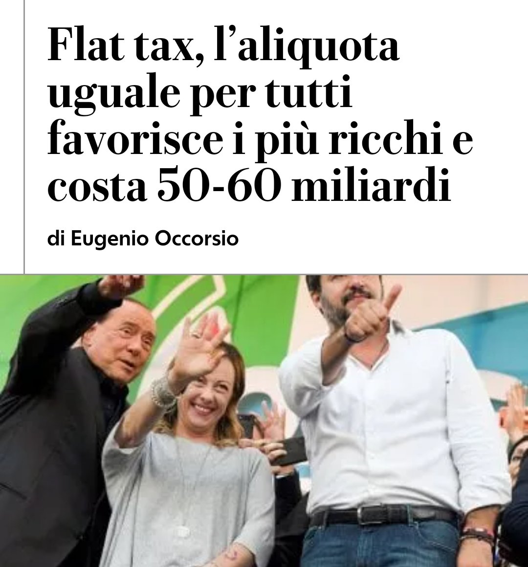 Dati praticamente ignorati dall’opinione pubblica, presa dal pregiudizio antitasse e dalla cultura liberista. Finora, proposte caute come quella di Letta, sulla tassazione delle eredità oltre i 5 milioni di €, o la patrimoniale di Fratoianni oltre i 500.000 €, formulate in termini poco comprensibili dall’elettorato medio, hanno solo alimentato il fuoco della propaganda avversaria.