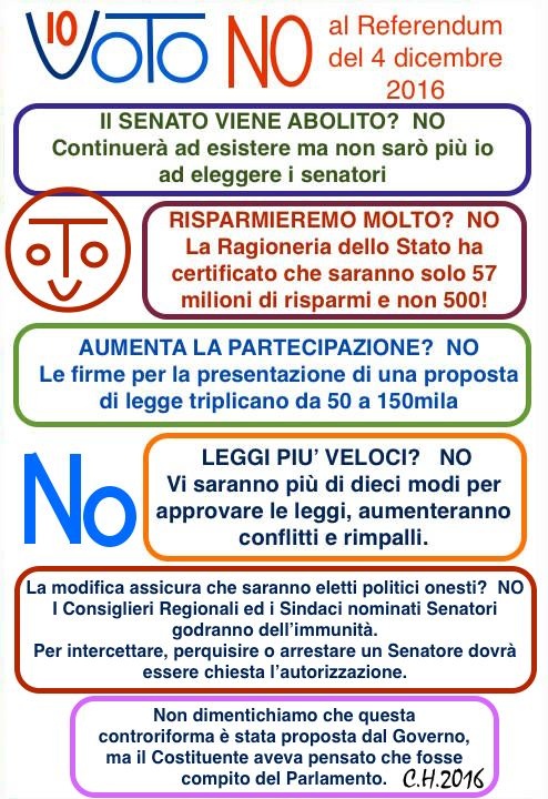 Seconda premessa: la riforma è stata ideata e ostinatamente voluta dal Governo della Repubblica con la pressione e l’etero direzione dell’ex Presidente della Repubblica Napolitano. Gli ultimi Governi sono stati presieduti da chi non era stato nemmeno eletto. Allora non dimentichiamo come è nata questa riforma, non dimentichiamo da chi e come è stata approvata. E’ stata scritta dal Governo e questo già a prescindere dal merito costituisce un vizio molto grave perché i Governi sono espressione della maggioranza dunque sono di parte, mentre la scrittura della legge fondamentale dello Stato dovrebbe essere esclusiva competenza del Parlamento che rappresenta il popolo sovrano o di assemblee costituenti elette con sistema proporzionale in modo da essere il più possibile rappresentativa delle varie componenti politiche sociali e culturali presenti nel Paese.