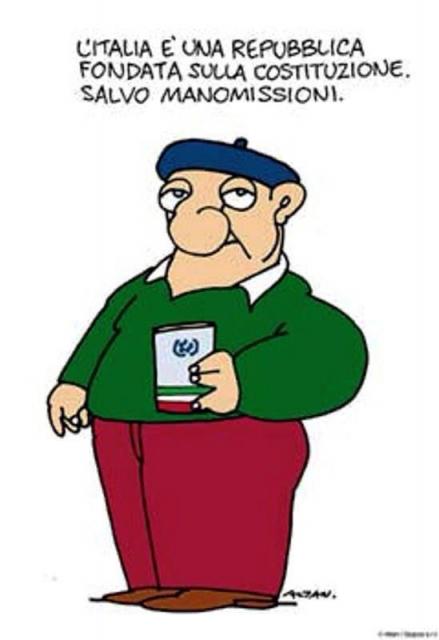 Il vero grande problema italiano, a mio parere, è la forbice tra la Costituzione formale, quella scritta dopo la Resistenza al nazifascismo e approvata nel 1948 e la Costituzione materiale, cioè la trasformazione, il travisamento, l’elusione della prima nella pratica politica. Quella pratica politica che ha spaccato il Paese e che ha avuto la gravissima colpa di contrapporre ad un’Italia che ancora crede nel progetto di attuare gli altissimi principi di uguaglianza solidarietà e libertà contenuti nella Costituzione, un’altra Italia fondata sulla speculazione, sulla ricerca esasperata del potere e della sua conservazione, sul compromesso e sull’accettazione di metodi mafiosi clientelari e poteri criminali.