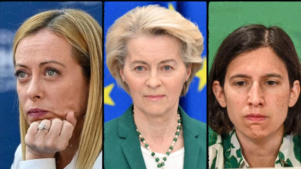Comunque la si valuti, questa è una svolta. Felpata, ben dissimulata, con tanti gne-gne sovranisti per far vedere che non c’è stato alcun cambiamento. Ma al di là degli slogan placebo, di fatto è uno strappo, anzi la certificazione di uno strappo già avvenuto. La Meloni e la Schlein camminano ai lati del trittico europeo, Ursula, Roberta Metsola e Christine Lagarde. Un gineceo, anzi una ginecocrazia.